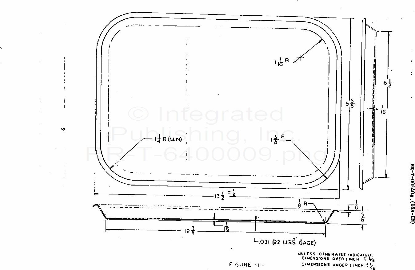 This specification covers a corrosion-resisting steel, rectangular tray used to carry catheter trays, thermometer-technique equipment, and medicines to the patient's bedside.